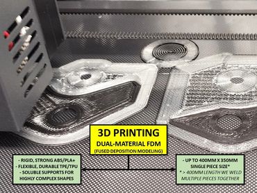 We have printed over 100 individual pieces for our customers covering multiple materials and colors. We do not offer 3D Printing as a standalone service; we offer 3D Printing to our customers only as part of their new product development process.